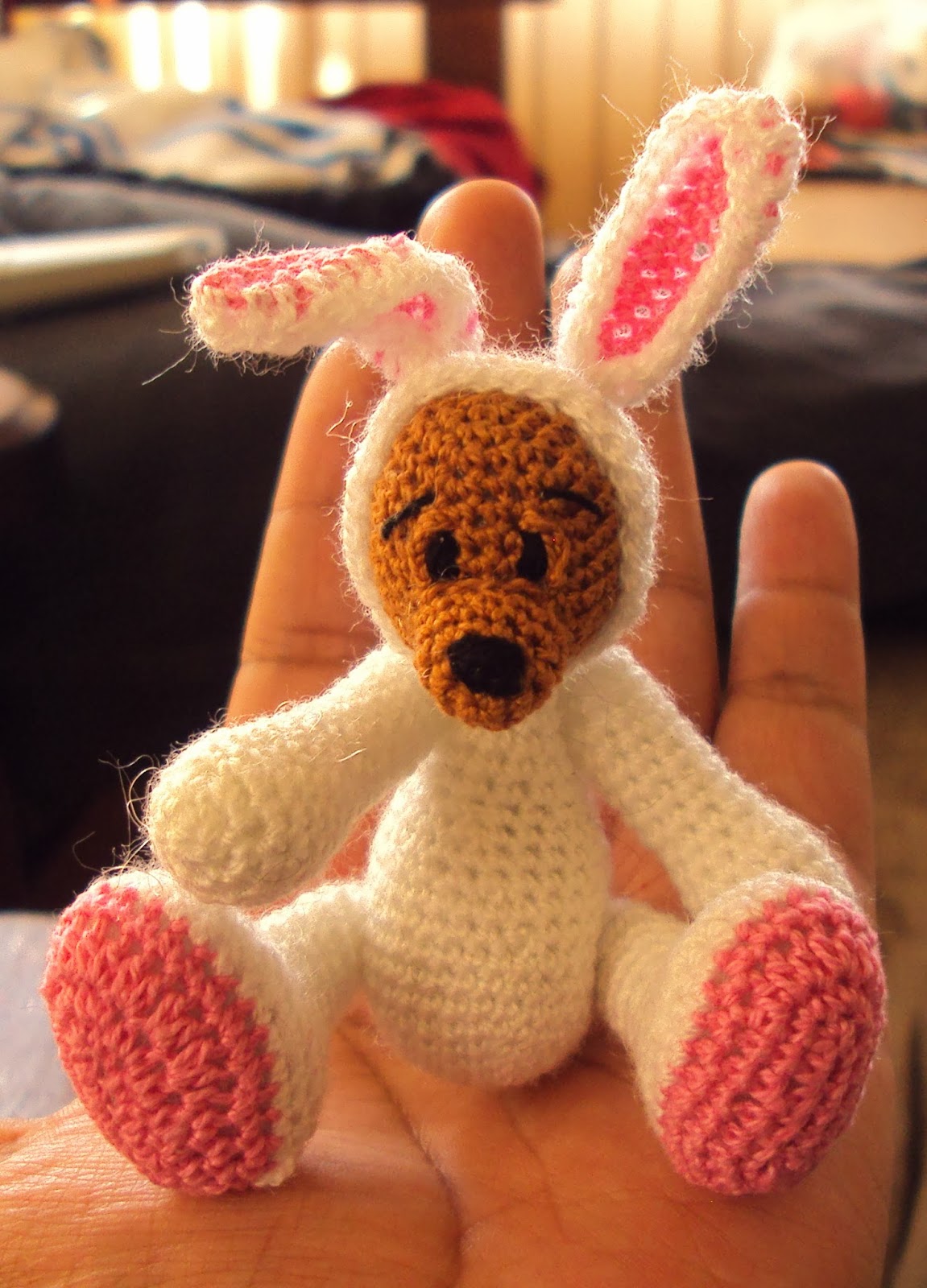 ResponderEliminarEs una auténtica cucada. Tiene el encanto sumado de un oso y de un conejito. Y tan chiquitito....^_^ Preciosísimo